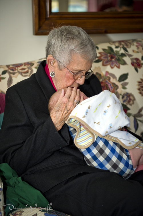 As we waited for the time to come that we were to leave for the church Jay spent some meaningful time with her great-grandchild. Then it was finally that time to load up and drive to St. Andrews for the service.