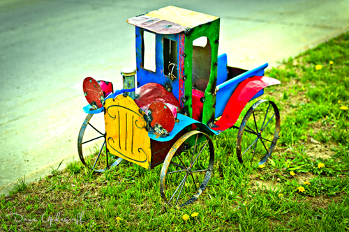 Every day on my way to and from work I drive past an auction house. There is also an adjacent green house. From time to time they have some interesting things in their lot. Last year, for example, they had a metal chicken painted a variety of colors and for the two weeks that it was out on display I intended to stop and photograph it. Of course one day it was gone and I had missed my chance.