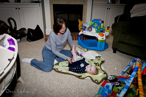 Jeanne and I sat with Joshua last evening while Ben and Angie had an evening out. He is much better although still somewhat congested. Above Grandma does the manual labor of changing the diapers.