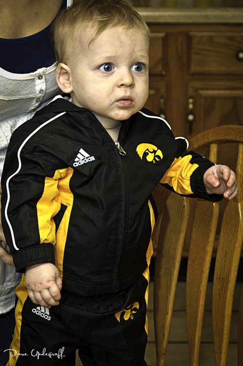Two days of Joshua, Yea! Last evening Angie, Ben, and Josh stopped over for dinner. It had been a long time since they have been here and it was really great to see them. I love this little Hawkeye warm up suit.