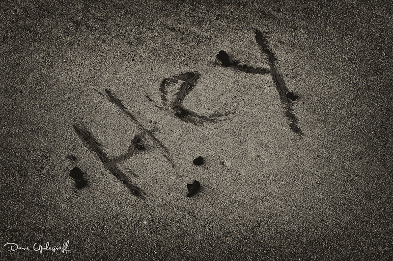I came around one of the buildings looking for architectural designs, converging lines, rule of thirds, all the technical terms from Ben Long’s course and this is what I saw. More than likely the work of a young elementary student, but someone had taken some pieces of mud and wrote simply “Hey.” When I looked at it through the viewfinder I like what I saw so I made the image.