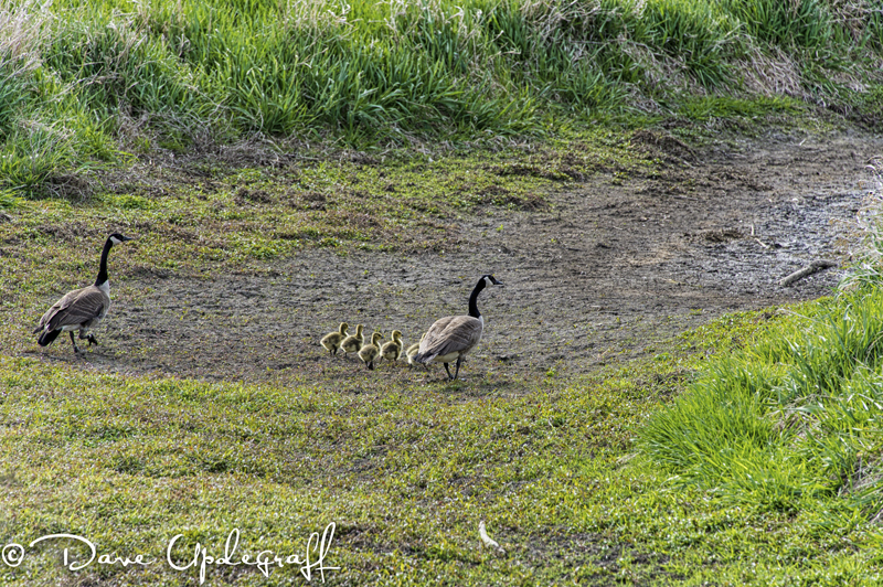Lots of new babies right now and of course with the lower water levels their nests are no longer as protected as when the pond is full of water. Where these geese are walking is normally under about two feet of water.
