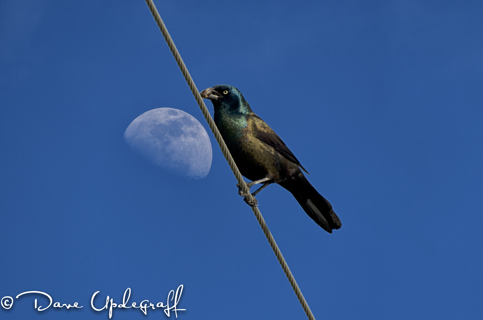 He has some food in his mouth so he must not have been the one making all the clatter. Okay I did stick the moon in. It was out of the frame so I moved it a little closer than it really was.