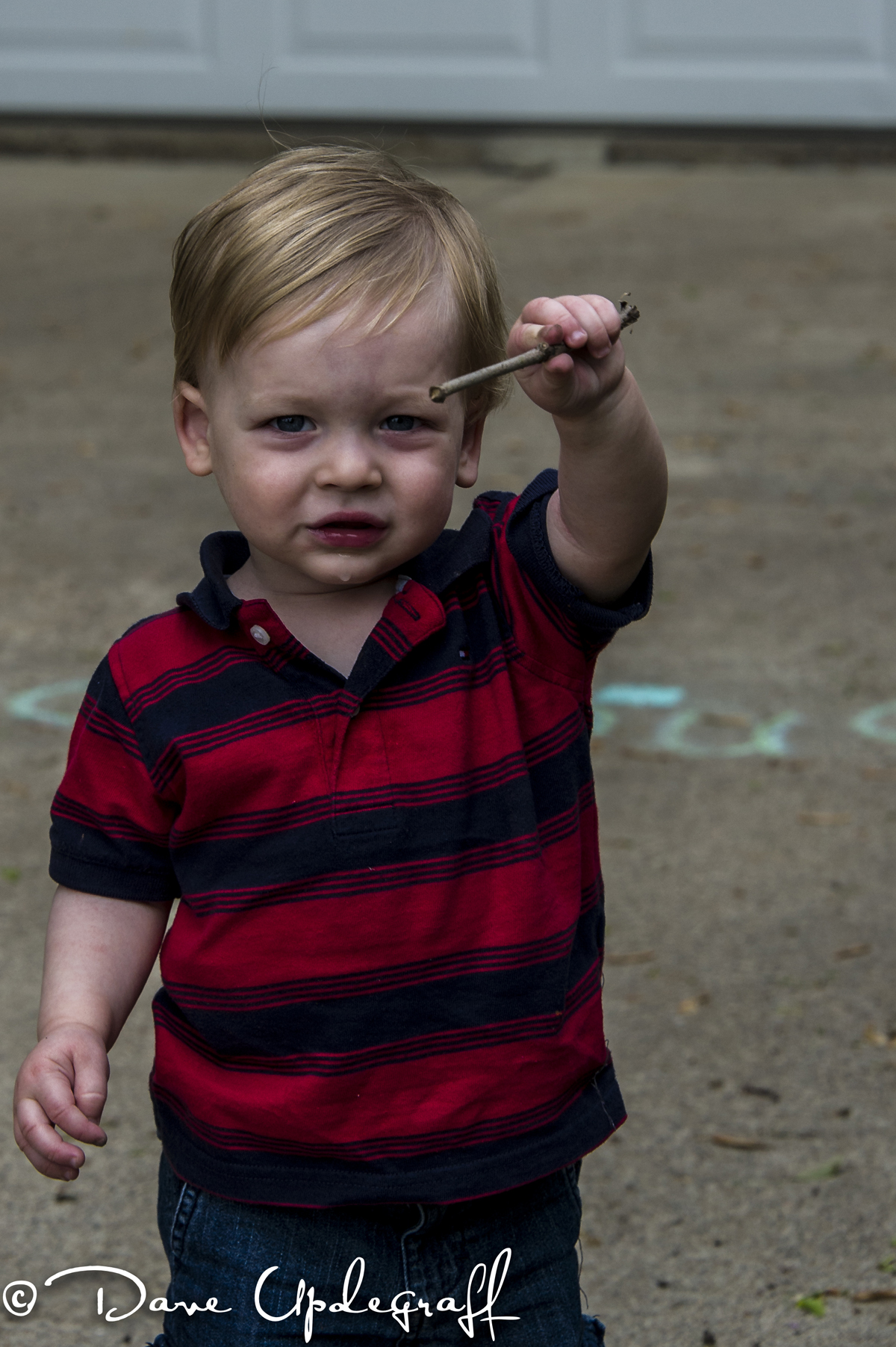 These images were taken yesterday afternoon. Josh was playing in the yard and decided to do some digging with a stick. The only place to dig was a patch of bare ground near the driveway. He found out how much fun it was to dig in such a fashion that the dirt all ended up on the driveway. 🙂