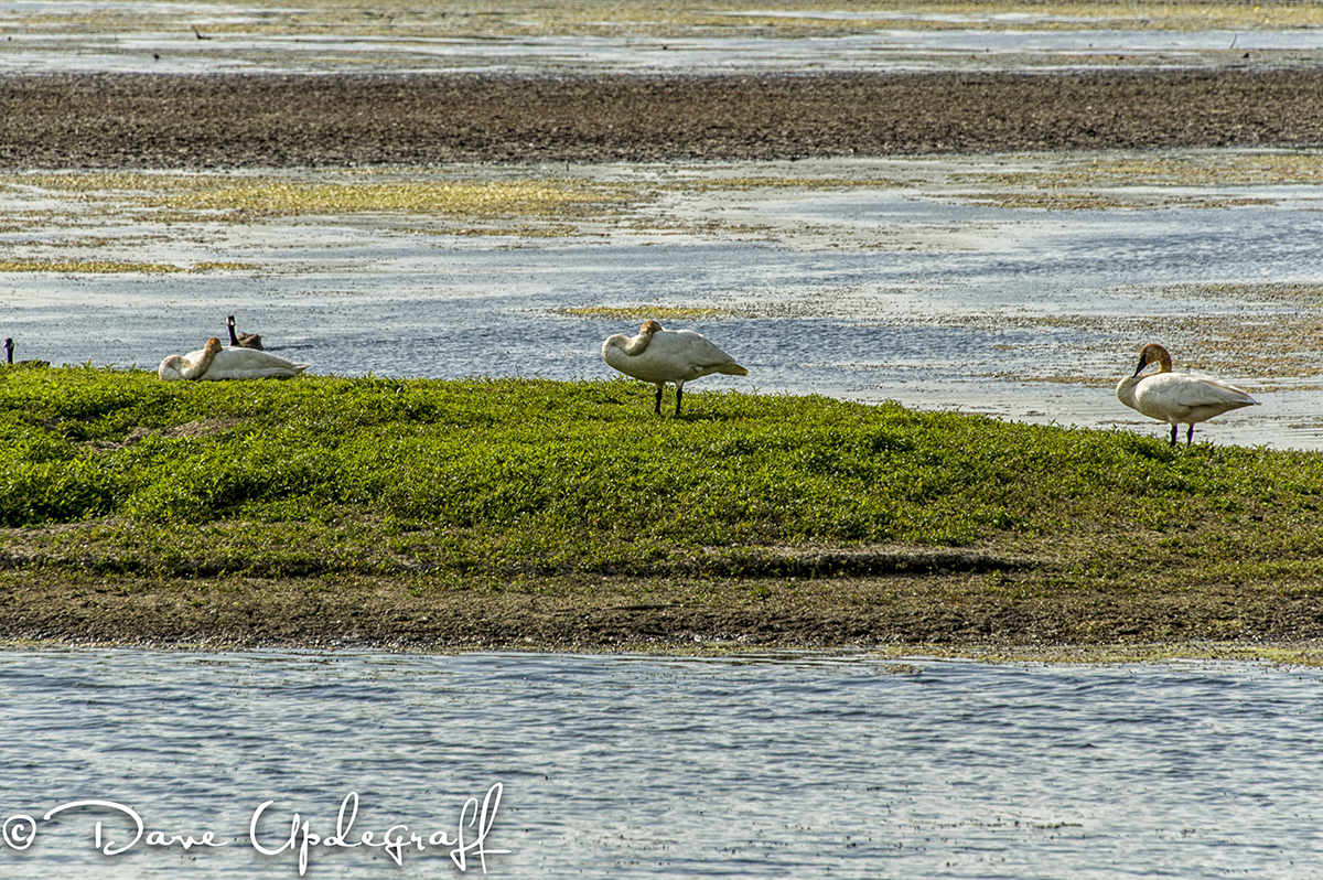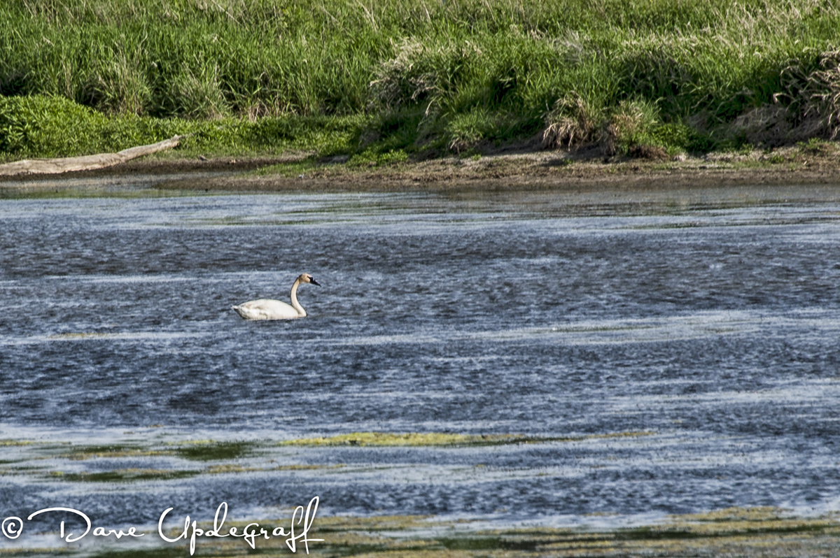 The young swan that escaped captivity from the Interpretive Center continues to enjoy his freedom at the South end of the pond. He still cannot fly any distance so he seem content to spend his time with the geese and swim in what little water that’s left the pond.