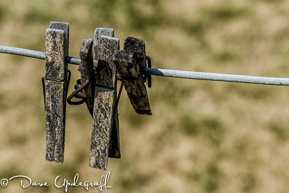 The second thing I noticed was there was a natural (well Jeanne did it by accident) grouping of clothes pins. Either in groups of three, groups of two or single pins. I also was interested by how weathered these pins are. I don’t know how long they’ve been on the line but it looks like a very long time.