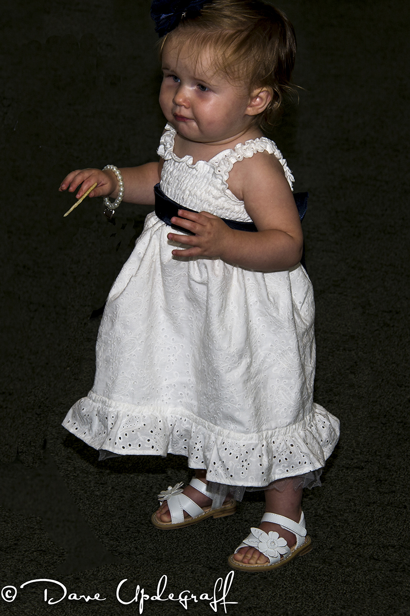 I notice this little girl when we first arrived at the reception. She had a cracker in her hand and was dancing to the music playing. Although I did a lousy job with the composition of this image I still like it.