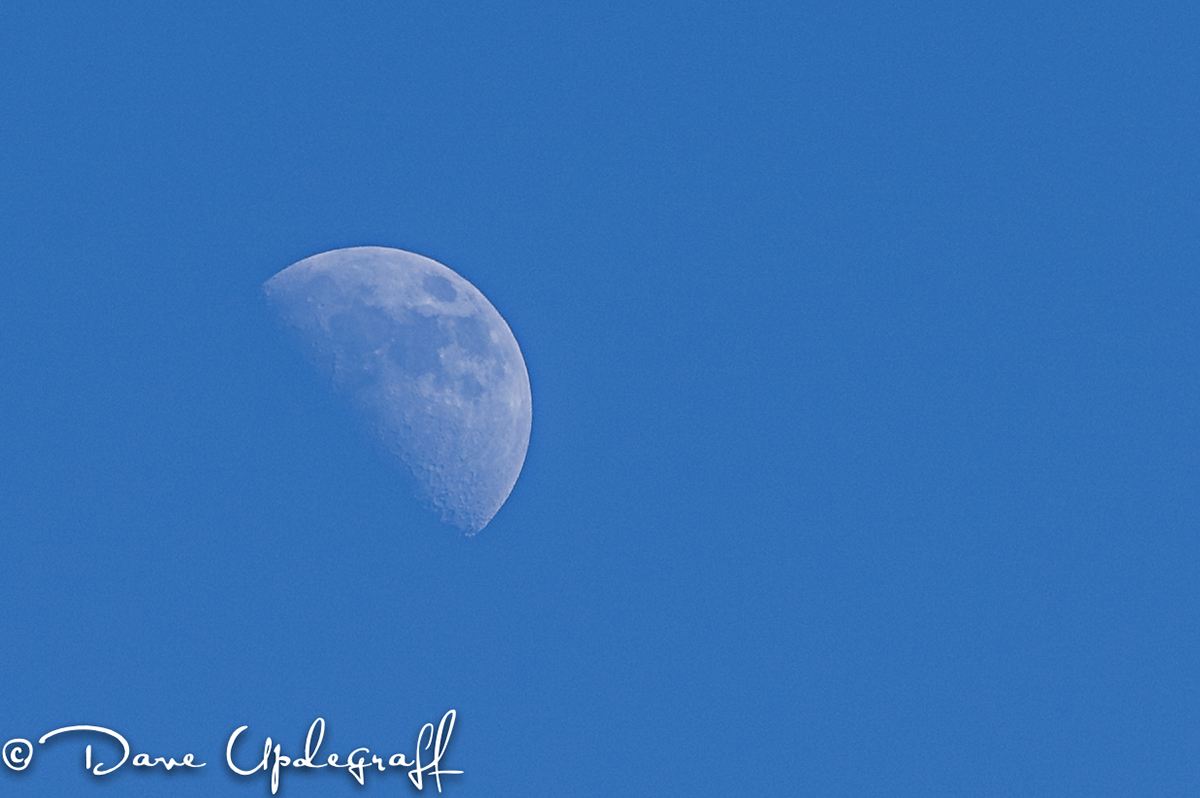 Photographs are everywhere you care to look. Once I shot the farm scene (first image) I notice the moon. I didn’t take the big lens out and set up the tripod I just used the 28 – 300 mm lens and shot this image.