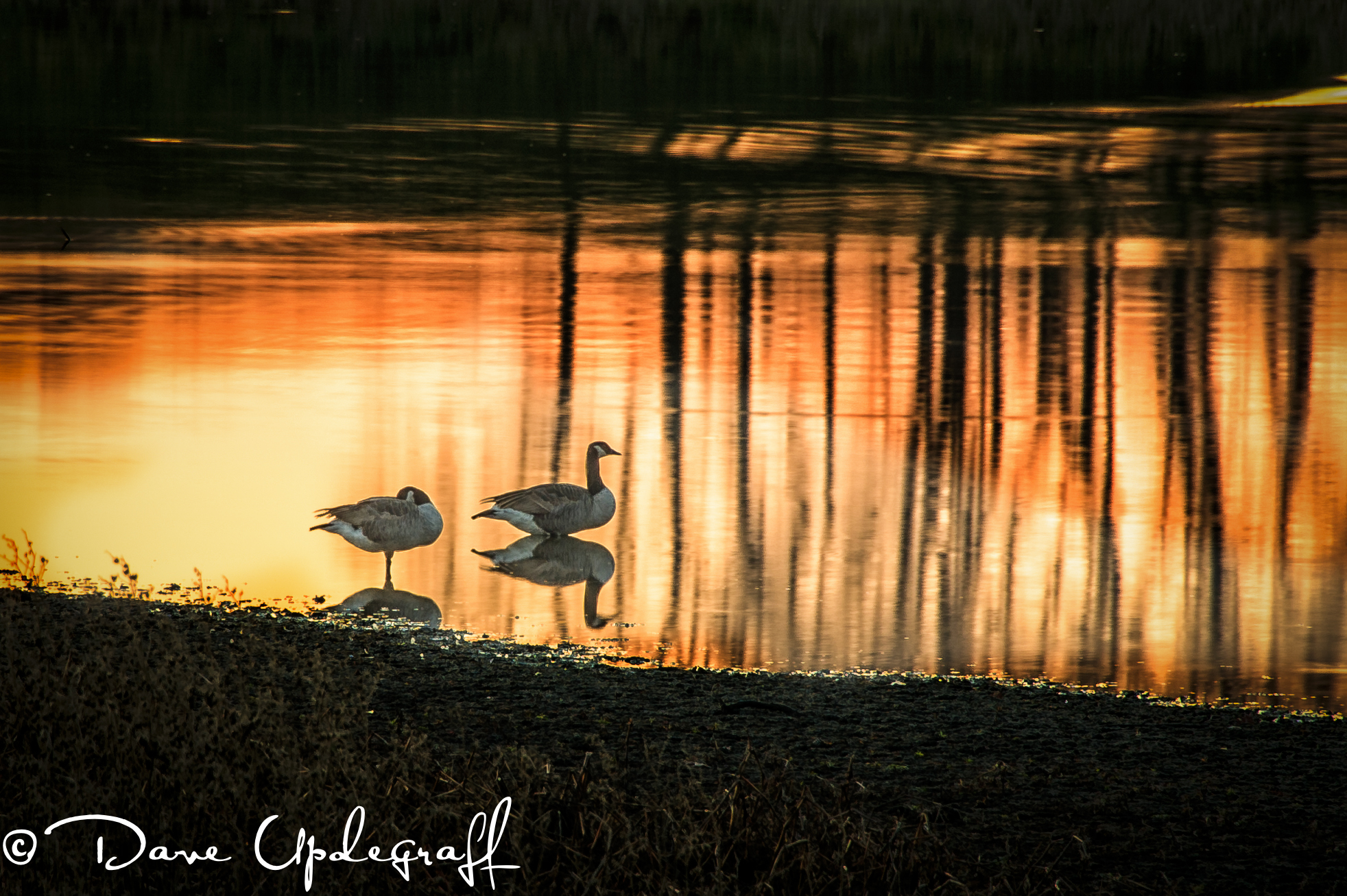 This is an image I took at around 5:10 pm last night. I took it for my 365 project. I was driving past what is left of the duck pond and what little light remained revealed these two geese standing in the little pond. I just caught a glimpse of them but I thought I might be able to capture an image.