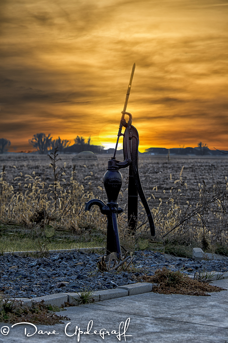 We were chasing the sun so I headed out West of Dubuque trying to get a pretty sunset (I’ll show you some of that tomorrow.) But I wanted to leave you with this shot. We drove to the end of a street to capture the sunset and as I was walking back to the car I notice this pump sitting in the side yard of a newly constructed home.