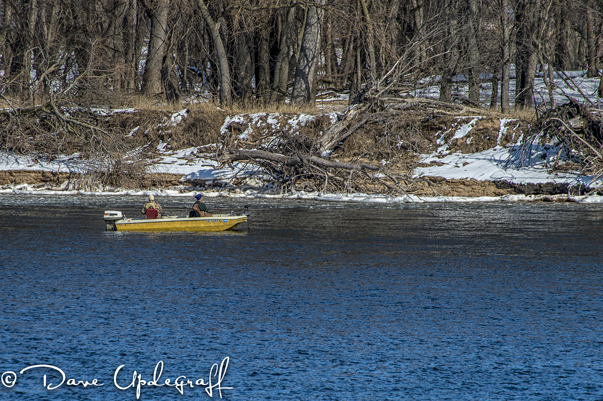 When I arrived at my normal place, the ice had pulled farther from the dam and there were no eagles in sight. The reason was clear at least in my mind, there were lots of fishermen below the dam. Their boats constantly moving, crisscrossing in front of the dam.