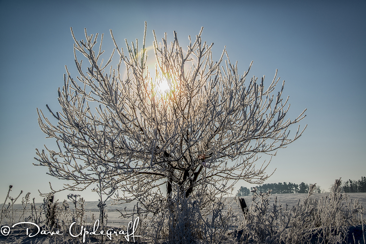 I was actually ahead of schedule yesterday morning. WAS ahead of schedule until I starting looking at all the wonderful scenery covered in frost from the morning fog. It was a beautiful drive in yesterday. I shot about 25 images most of which required me parking on the traveled part of the roadway and walking over to the shoulder, and standing ankle-deep in snow. Totally worth it but of course I was 10 minutes late getting to work.