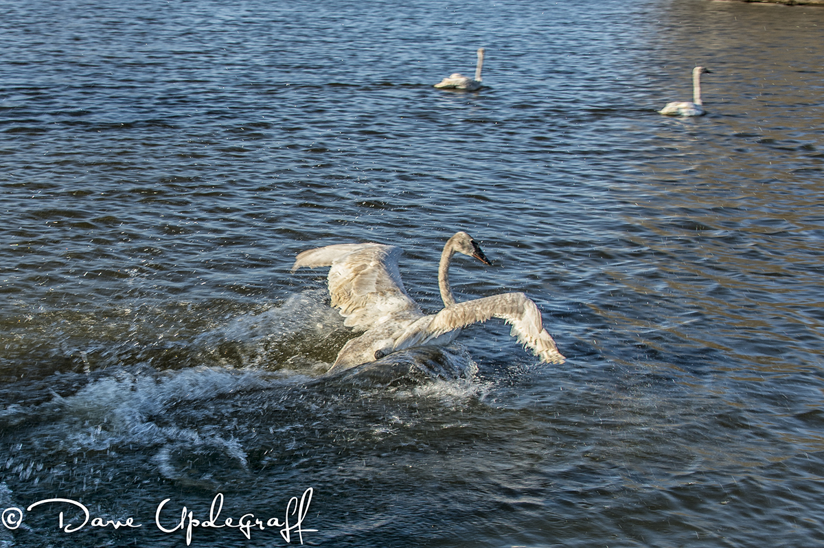 Kevin let the one he had free and she ran, flapping and tooting to the water, then calm as could be she just swam away. The others followed soon after and then all three were out in the middle of the small lake, swimming like they had been there for weeks. It was an enjoyable experience. Cold and windy but enjoyable none the less. I was also surprised by the number of iPads there. Many people used their iPads for movies of the event and to take pictures.