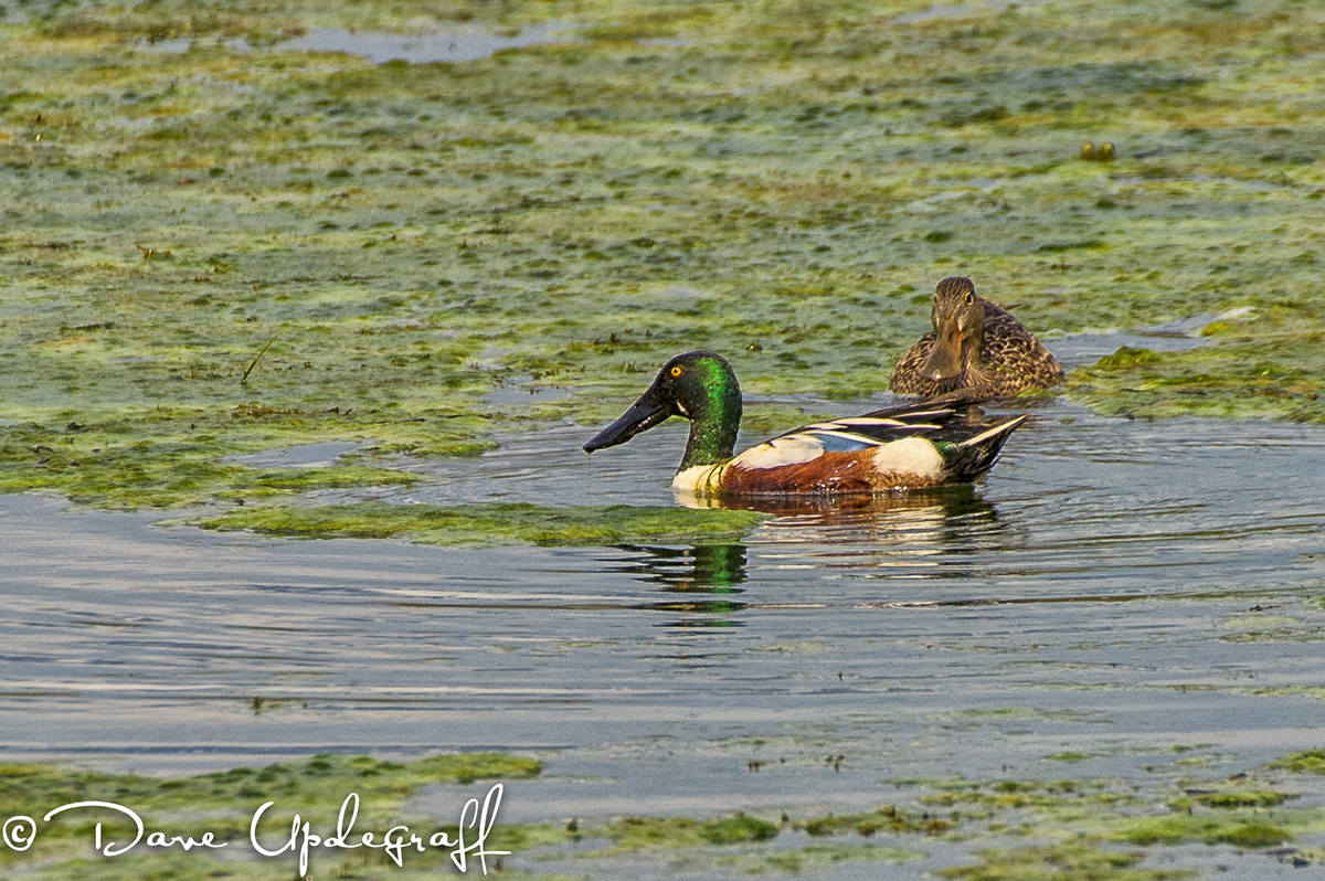 I had the ISO set to 400 and my f-stop to 8 so with the lighting conditions most of the time the shutter was in the 1/1250 sec range. The first image is of a rather messy male and female Shoveler Duck (I think.) I looked for similar ducks in my trusty field guide but I’m not a bird expert. I just like capturing their image.