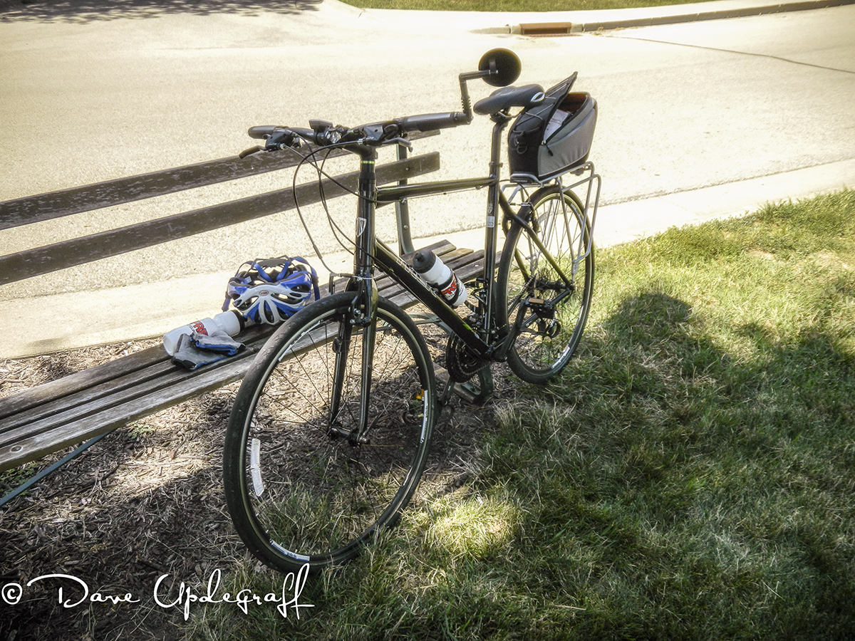 Ride Details: Actual ride time 1:37:35. Total distance covered 18. 1 miles. Average speed 11.1 mph (not too bad for first time out.) Highest speed attained 31.1 mph. Two bottles of water consumed and three small rest breaks taken.