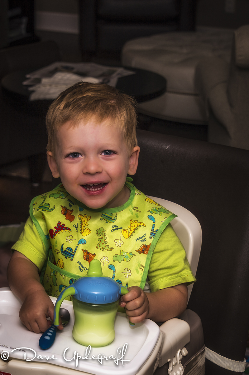 Joshua was glad to see us and was ready for some new playmates. Angie made a wonderful meal and then we had cake and ice cream to top it all off. After dinner Ben sat down beside me at the table with Gabbie. She was a bit apprehensive but as long as Dad had a firm hold on her she tolerated me.