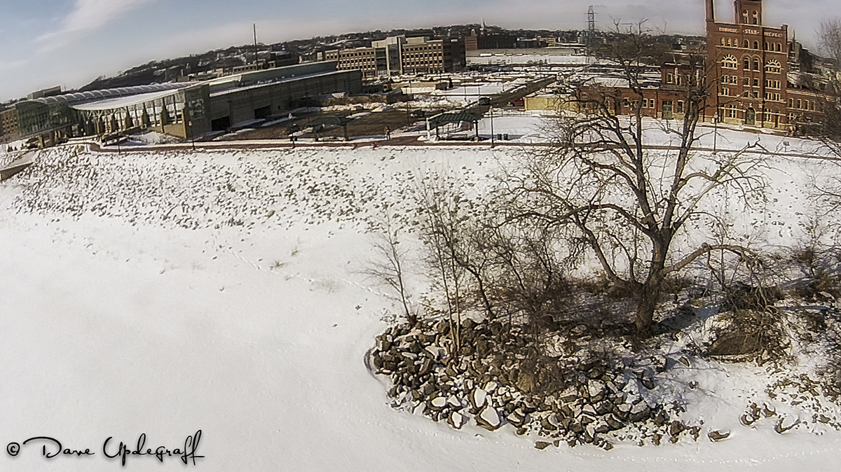 So where to go? I wanted to take an image of the Julian Dubuque Bridge I said to myself, so I loaded up the Phantom and a camera and off to East Dubuque I went. I went to the boat launch on the Illinois side of the river because it is close to the bridge and I reasoned I wouldn’t have to venture too far from my ground location. When I arrived it was apparent they had not cleared the snow in some time and so there was no good place to launch the Phantom from. As I sat there contemplating my next move I reasoned also that flying close to the bridge might be distracting to some motorist and that might cause an accident and I’d spend the rest of my life in jail. 🙂