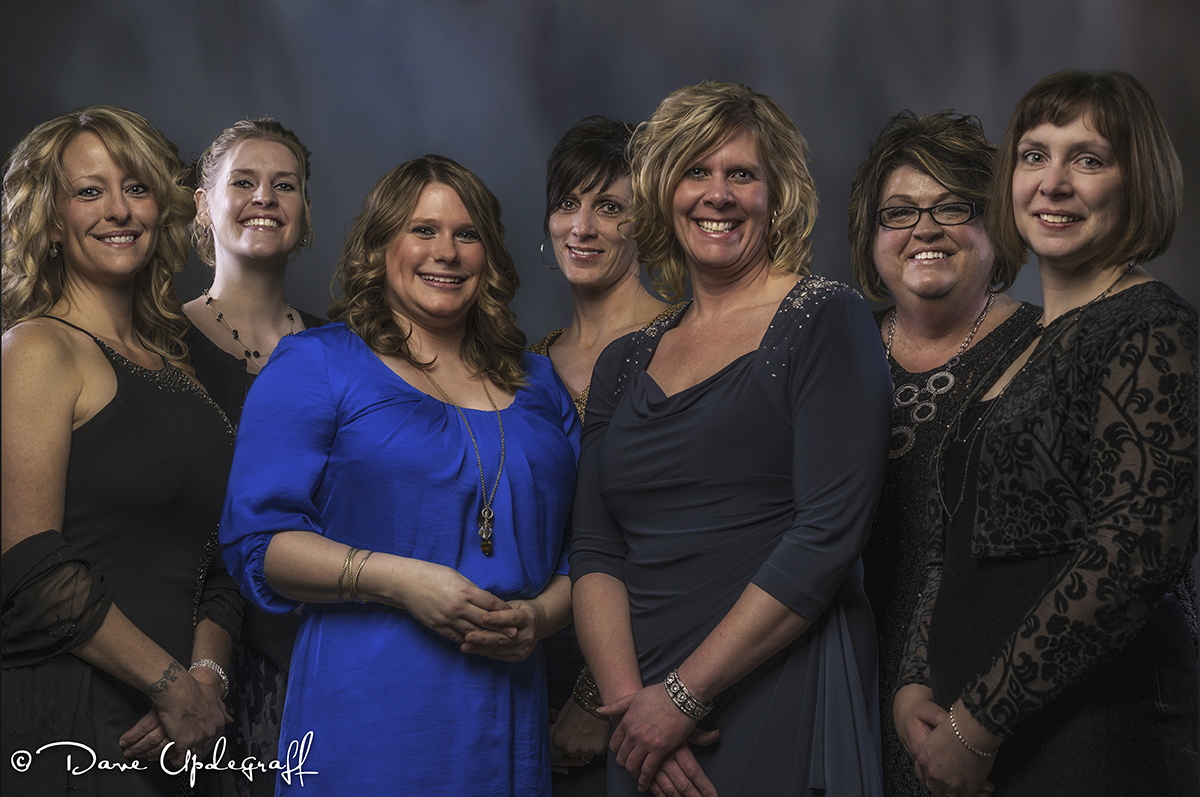 Here is another image from the Friday night Gala. These women all work at DAC in Maquoketa and I know a couple of them. This one took a lot of time because some of the background was not green screen so I had to improvise. I set the background up to take an image of two people (three tops) so this was really a stretch for both the background and the 85 mm f1.4 lens. I didn’t have that much room to back up and so it was hard to get them all in.