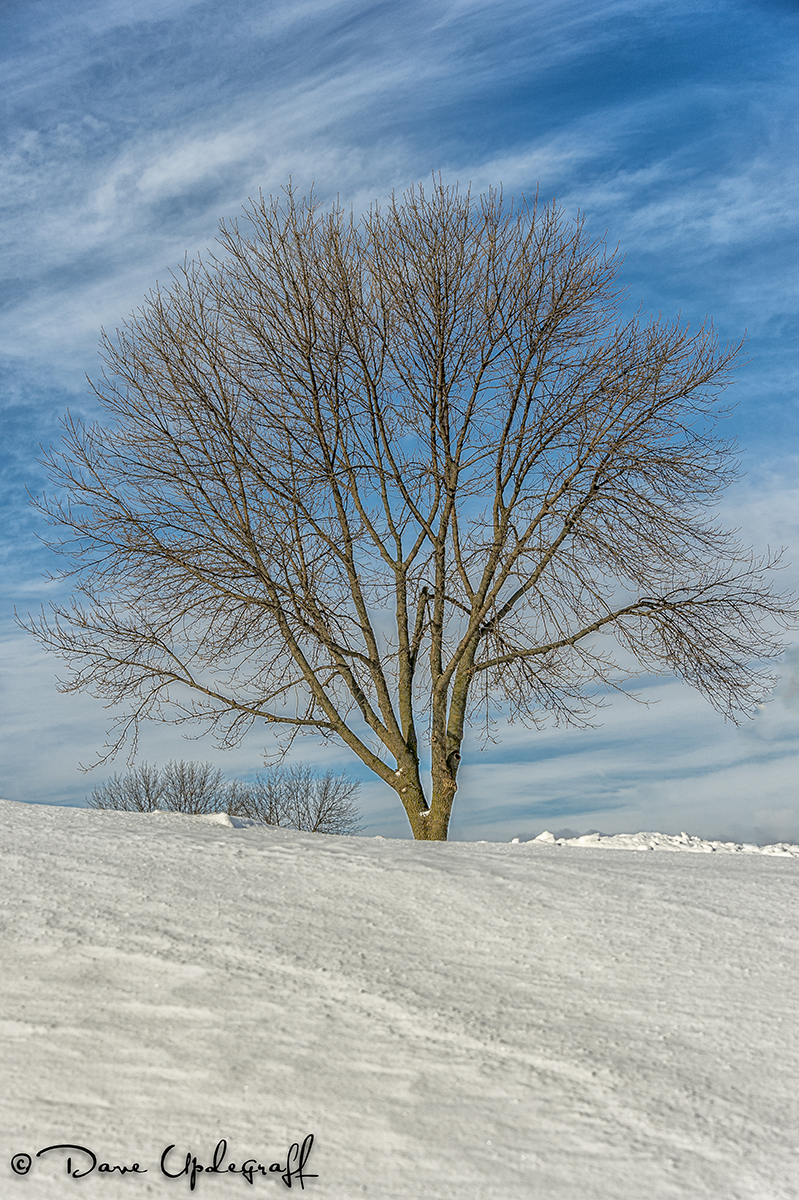 I thought I would share some Winter photos that I took yesterday. The image above is a tree that I have photographed in the four seasons. I like the way it looks and yesterday morning after I finished clearing the snow the sky was a pretty blue with white wispy clouds so I was able to make this image.