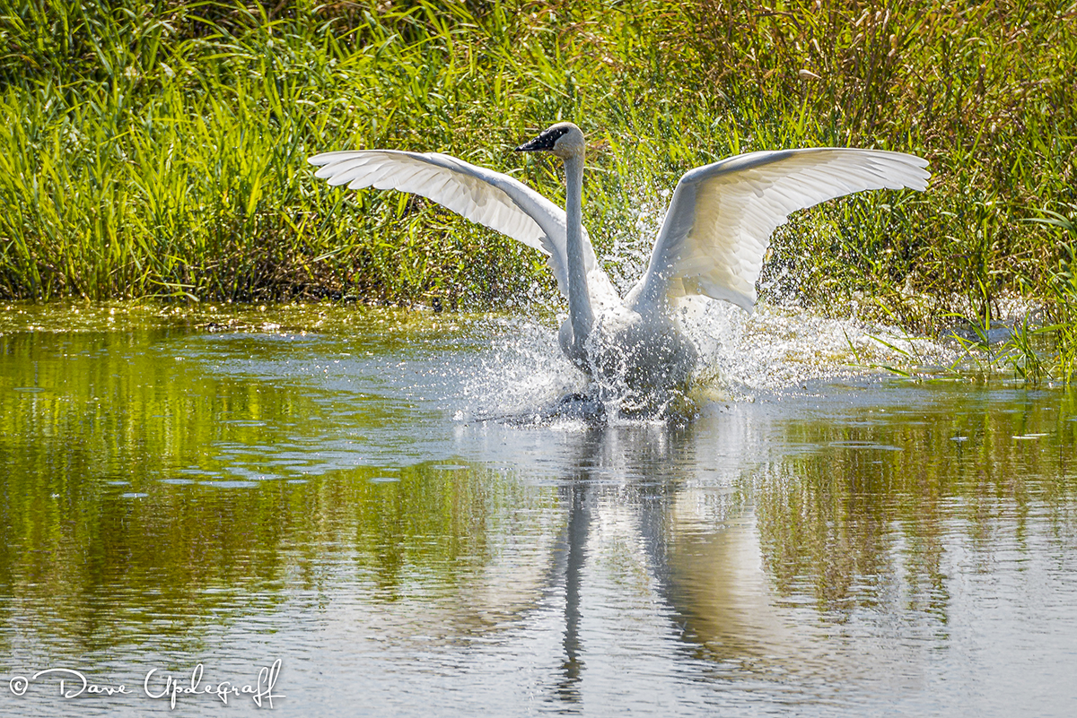 The duck pond has been a little disappointing for me this year. Very little activity of late. There were a couple of swans on the far side of the pond but it would have been impossible to get close enough to get a shot. So I thought I would go across the highway to the other marsh. There hasn’t been much there this year either but I was pleasantly surprised to see this pair of Trumpeter Swans rooting around in the grass.