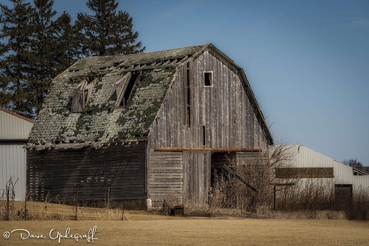 I’m not thrilled with this image. I tried it in black and white but the metal buildings detracted from that process as they do in color. My intent in photographing this old structure was to show the decay and deterioration of the building. I think the image accomplishes that but with the metal buildings as a detractor none the less.