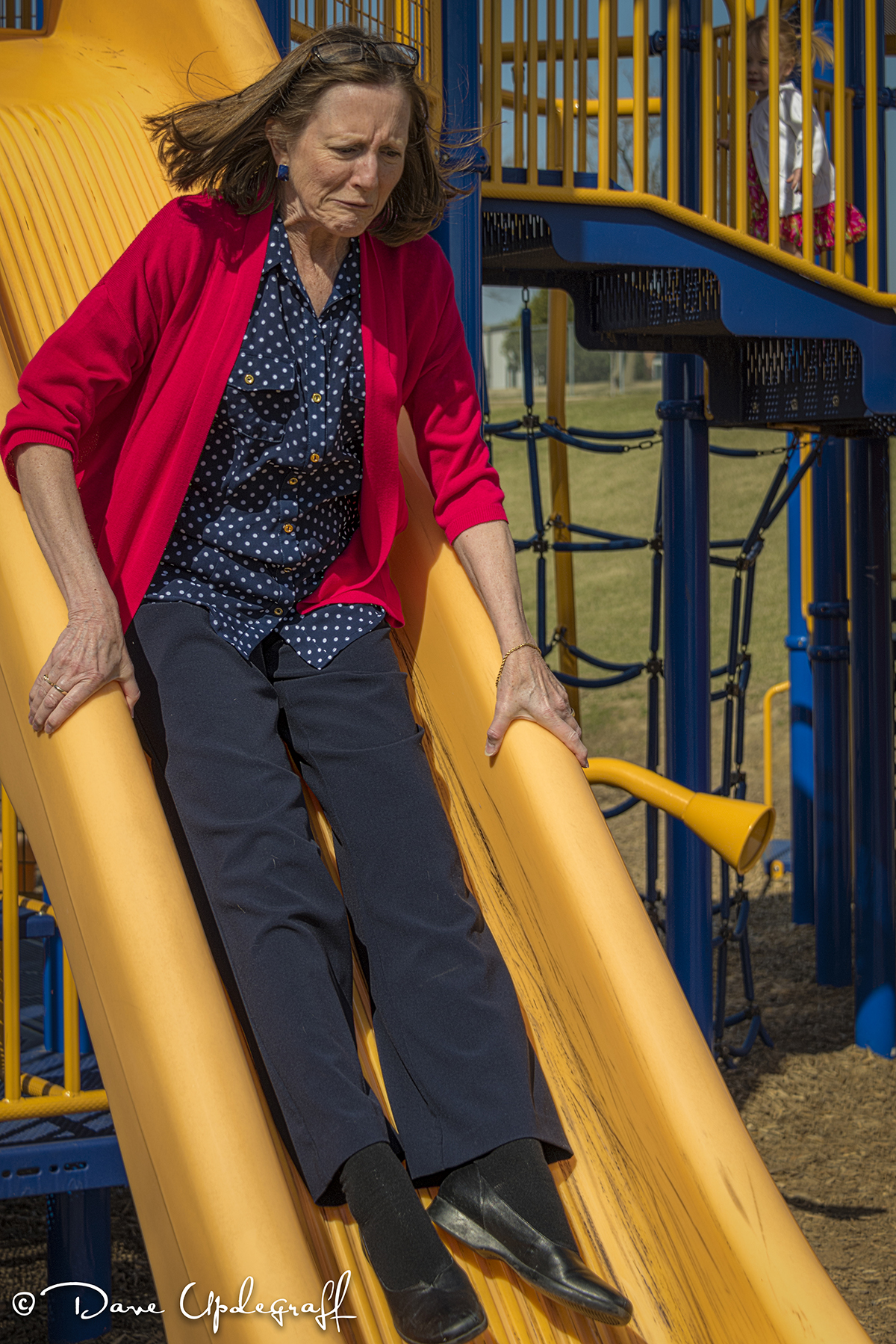 Ever the grandma Jeanne came down the slide at the request of Josh. I’m not sure she enjoyed it by the look on her face but she did it none-the-less.