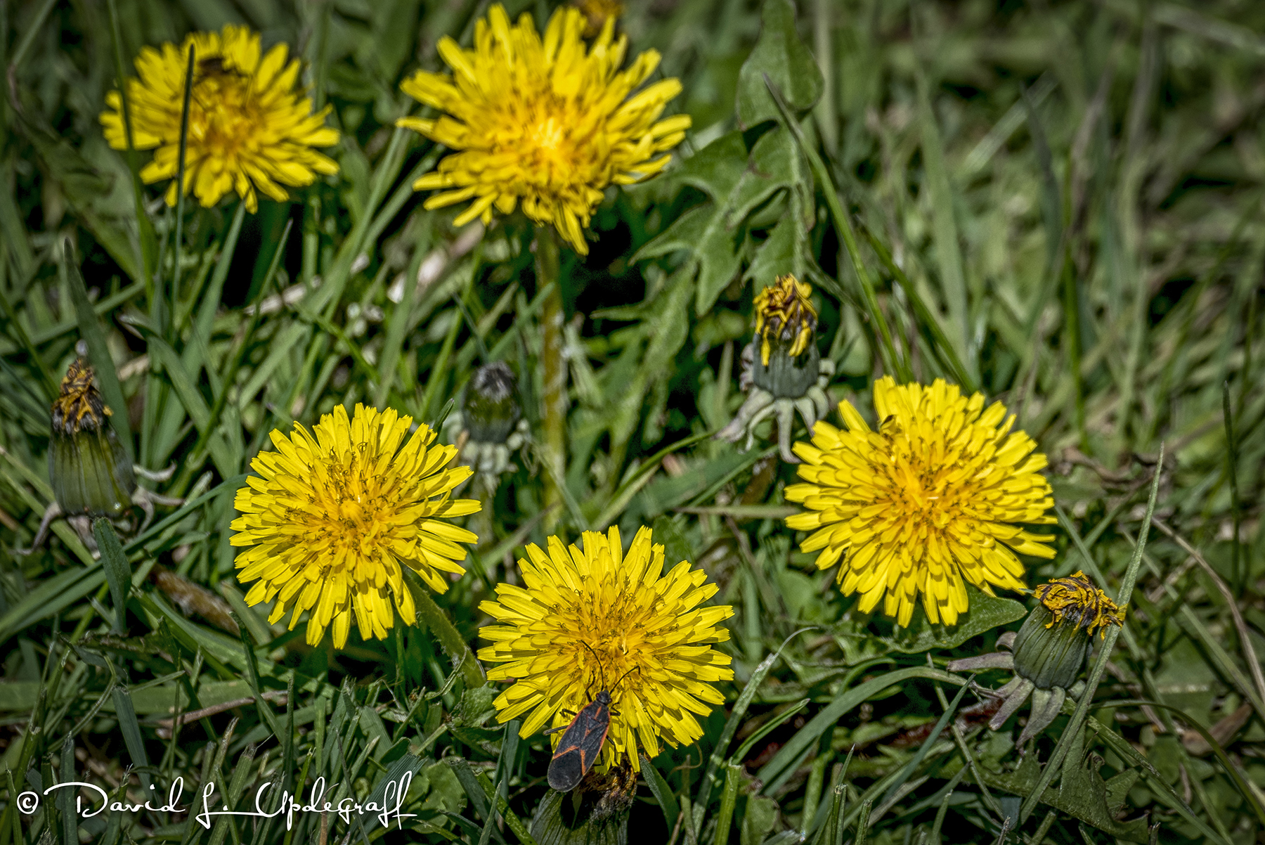 Not an award-winning image but a sure sign of Spring. A box-elder bug investigates a dandelion. We were coming back from the playground Saturday and Josh stopped to pick some flowers for his Mom. I noticed this little box-elder resting on the dandelion so decided to take some images. I really didn’t have the right lens but I’m happy with the results.