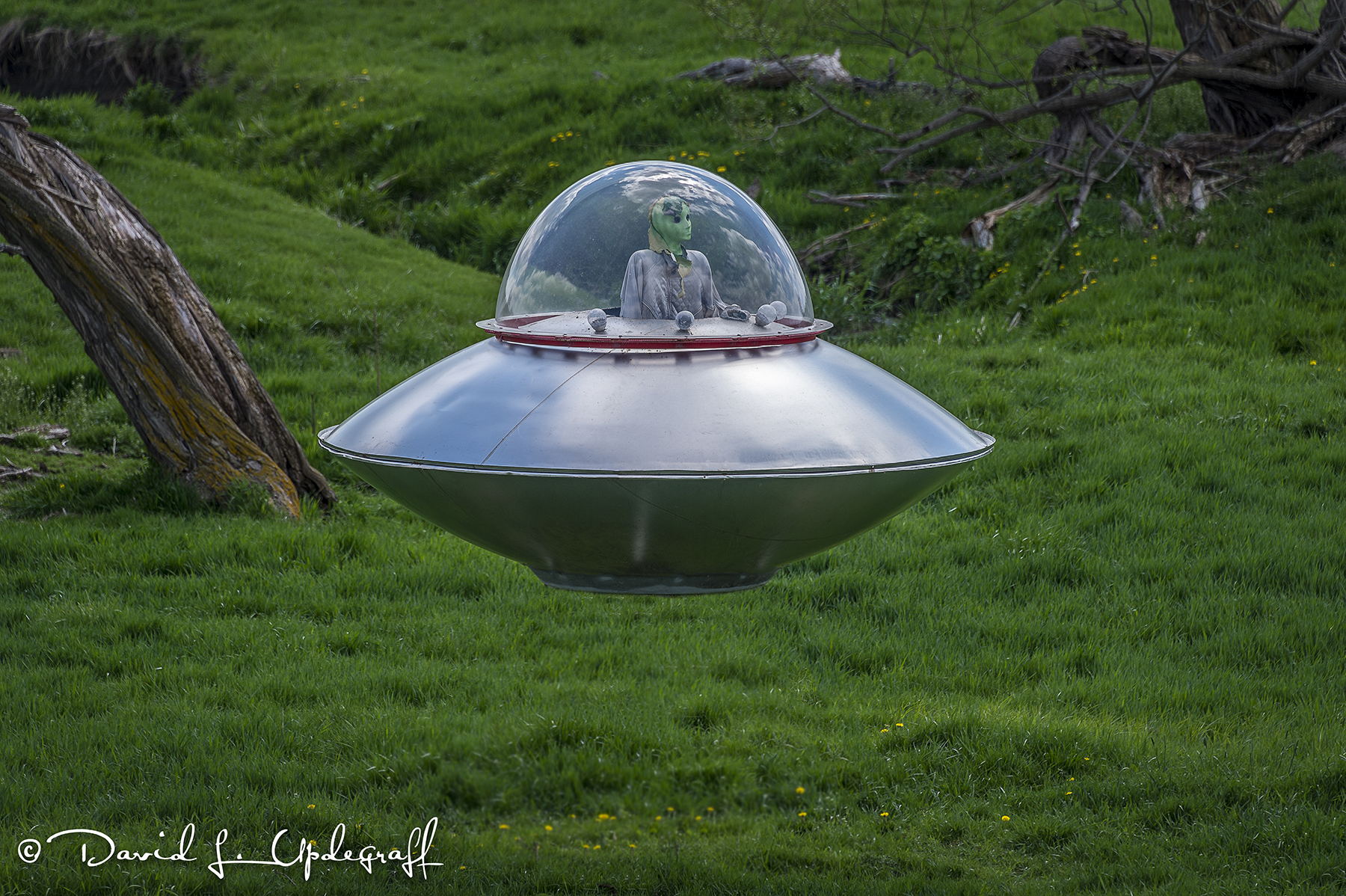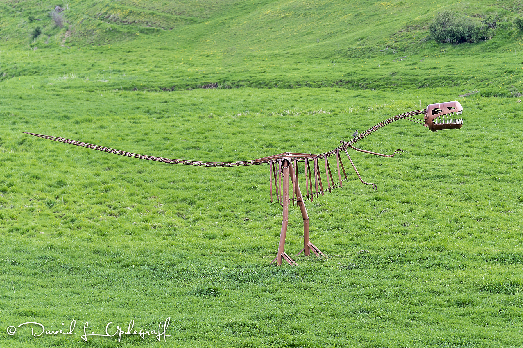 I have three images for you today. I was in a territory that was new to me and came across this field full of space ships and dinosaurs. Mainly dinosaurs and it was obvious I had found someone who has a real artistic talent working with metal and scrap parts.