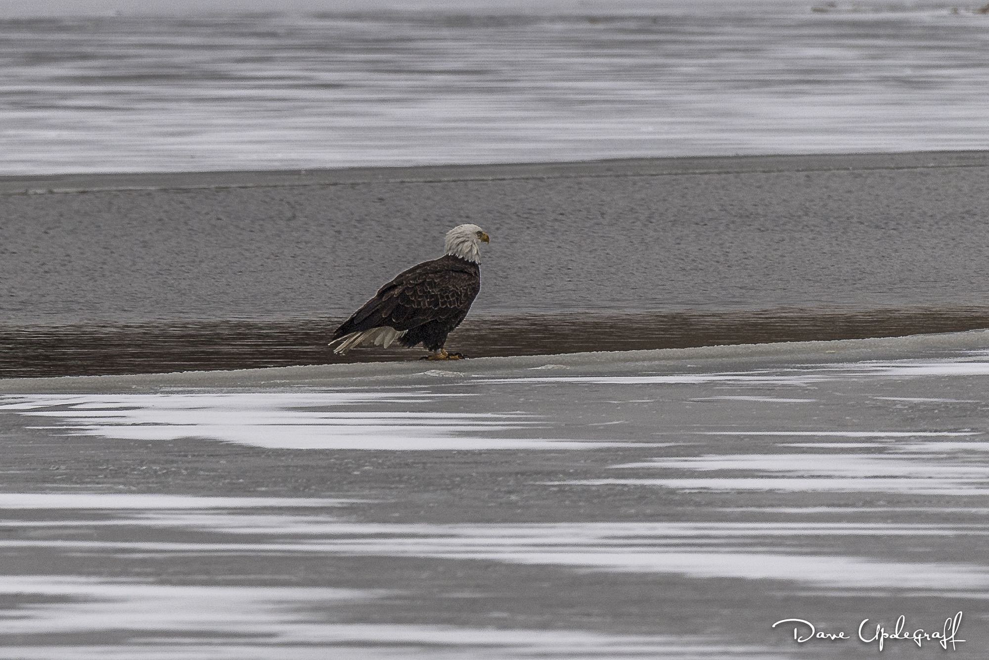 Cloudy and gray skies yesterday morning and the eagles sitting on the frozen pond were pretty far away but I had to grab a shot of them with the new camera. It really wasn’t configured yet but I had to take the shot. All things considered they are passable images.