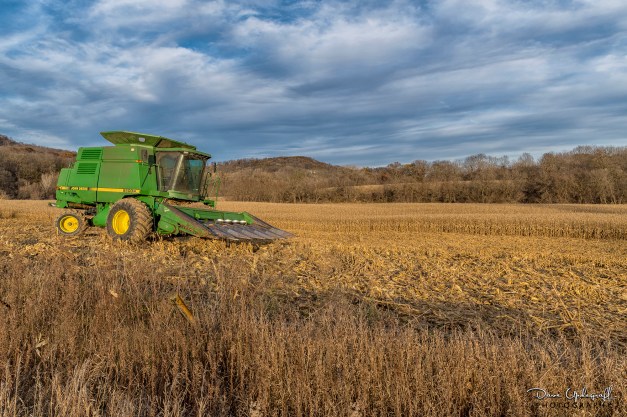 This is the first year that I can remember after starting this blog seven years ago that I haven’t posted some harvest images.  I did come across this combine sitting in a partially harvested field waiting until there was time to finish the job.