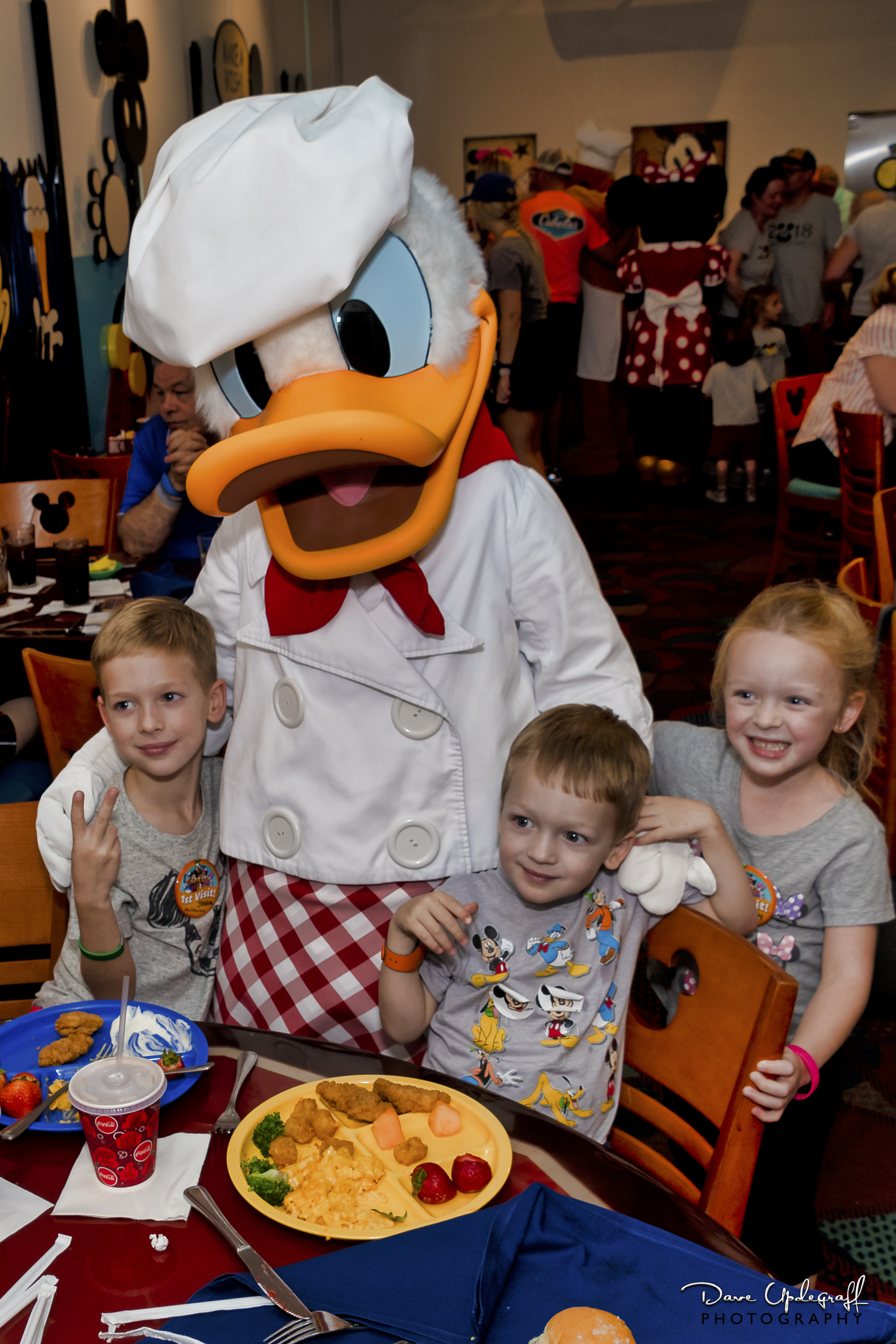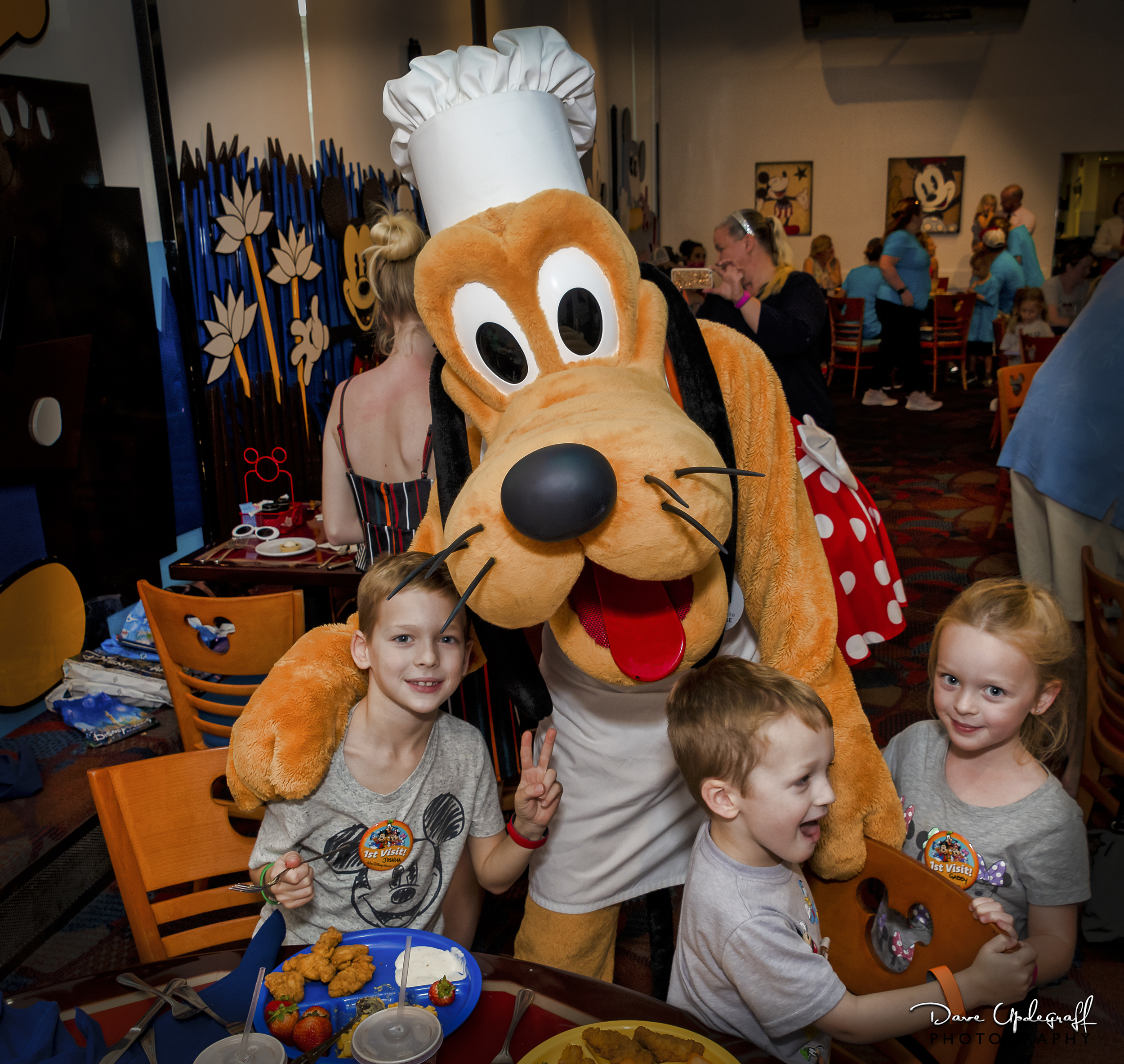 We arrived at Orlando International Airport without incident and took the Disney Shuttle to our Hotel. It was a magnificent hotel with wonderful accommodations and service. We had dinner in one of the restaurants and was visited by Mickey Mouse and his pals throughout the meal. It was so much fun to see Joshua, Gabby, and Austin’s reaction to each character. Of course I had to compete with their Mom so most of the time they were looking at her and saying cheese. 🙂