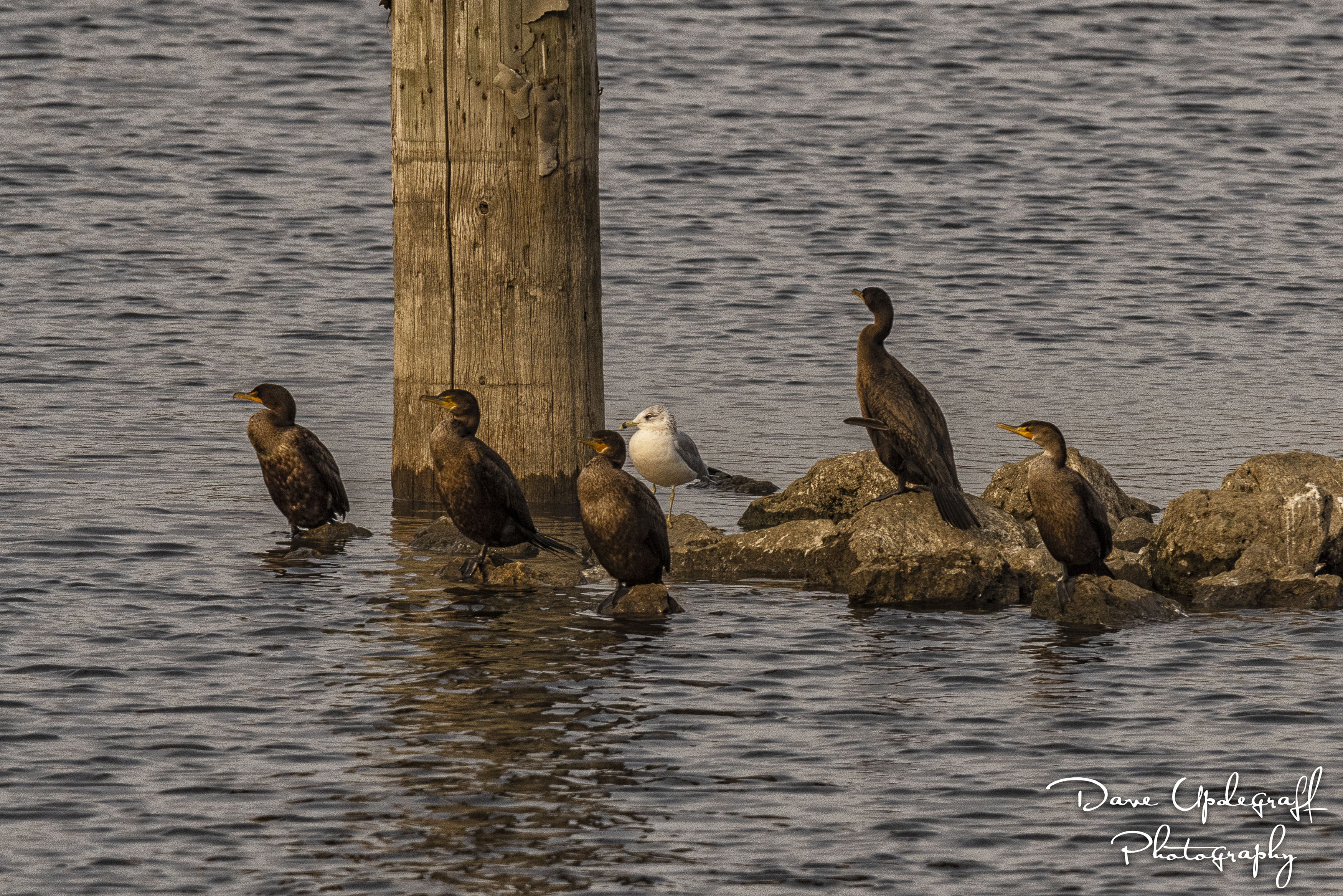 After the gulls I went to the 16th Street Basin (which used to be a great place for wildlife.) Found this group of Double-Crested Cormorants that were sunning themselves in some rare sunlight. A little gull was mixing in among them as well.