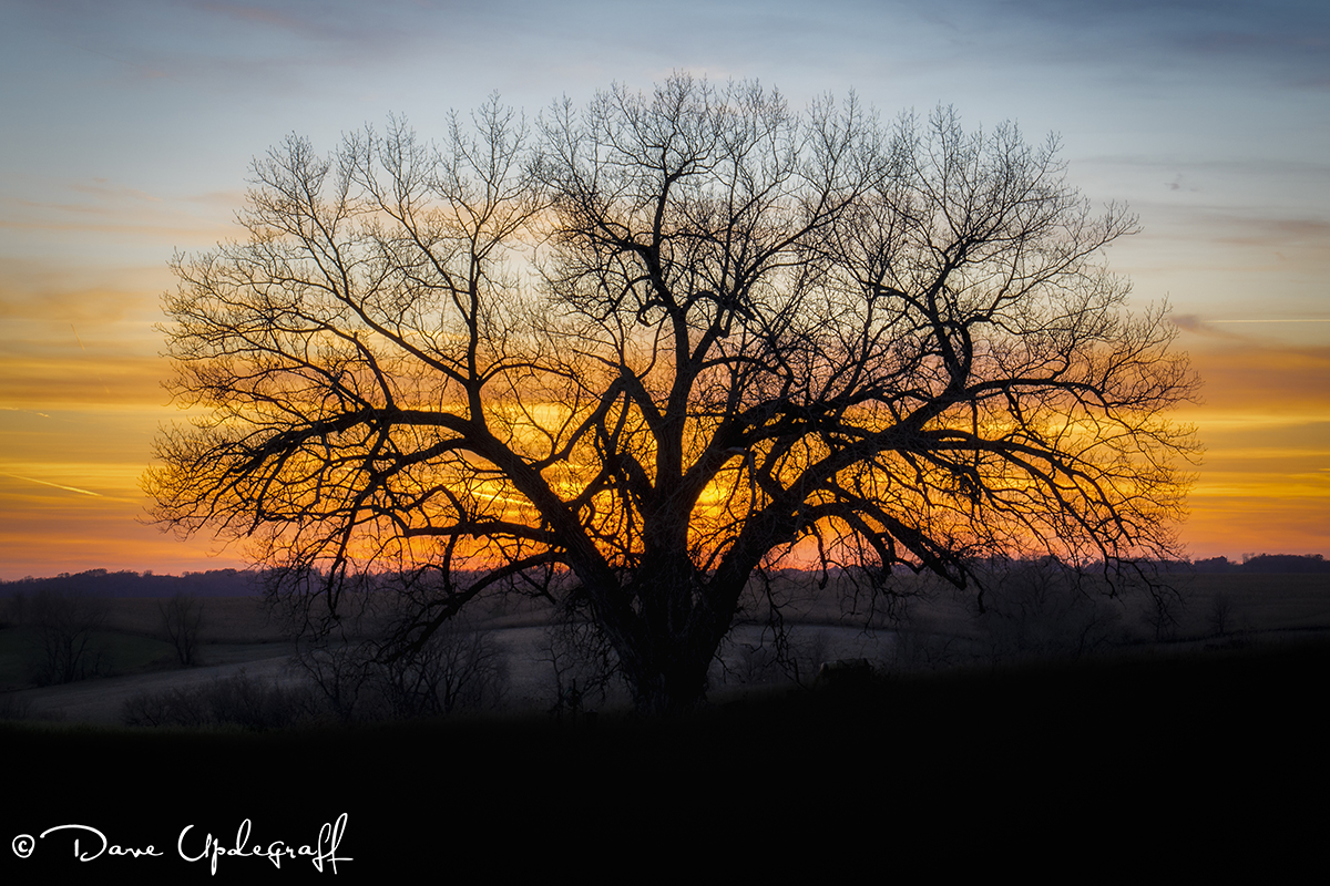 Last evening we went over to Angie and Ben’s for dinner. Mark and Taylor were in town and I hadn’t seen any of them for some time. On the way over I saw this tree against the setting sun. I love to take silhouette images against an interesting sky.