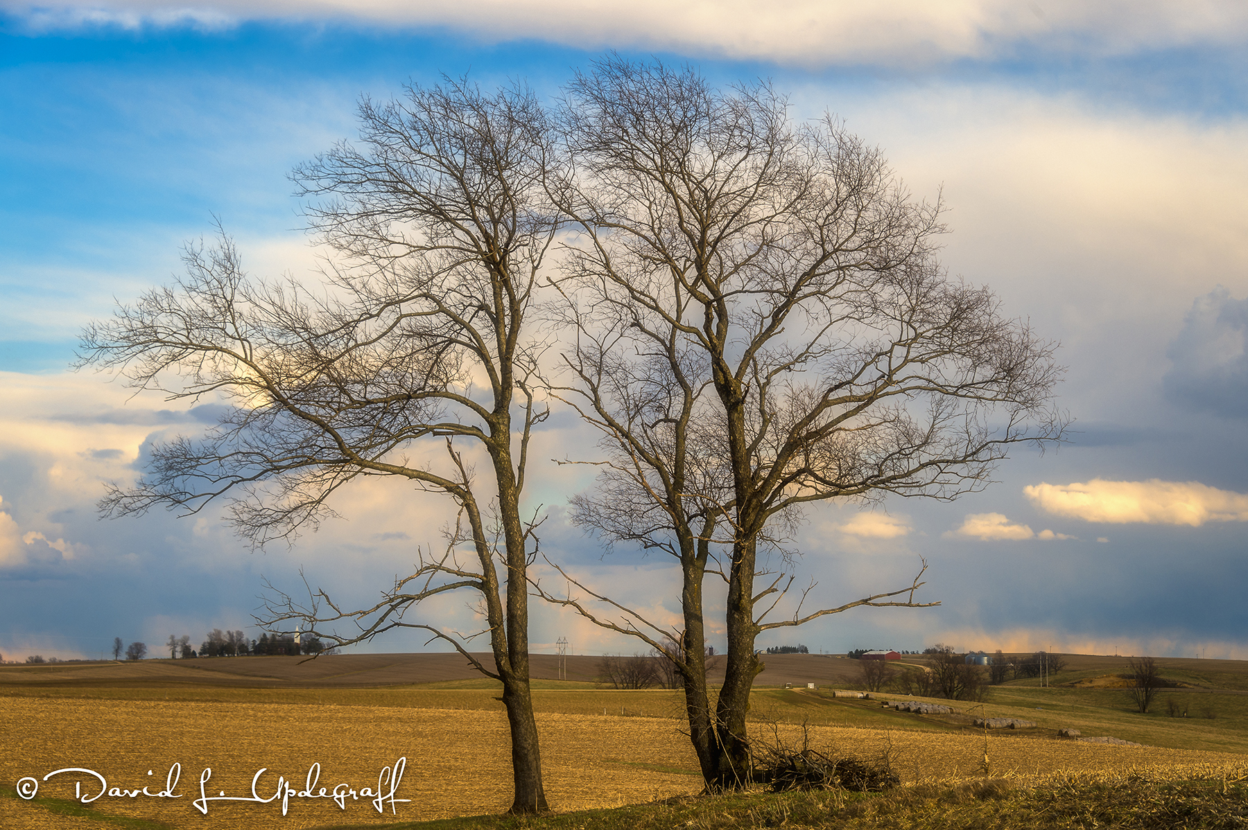 So I stopped to photograph my favorite windmill against that wonderful sky and as I turned around to head back to my car I saw these two trees growing in symmetrical harmony with one another. That sounds artsy doesn’t it. 🙂