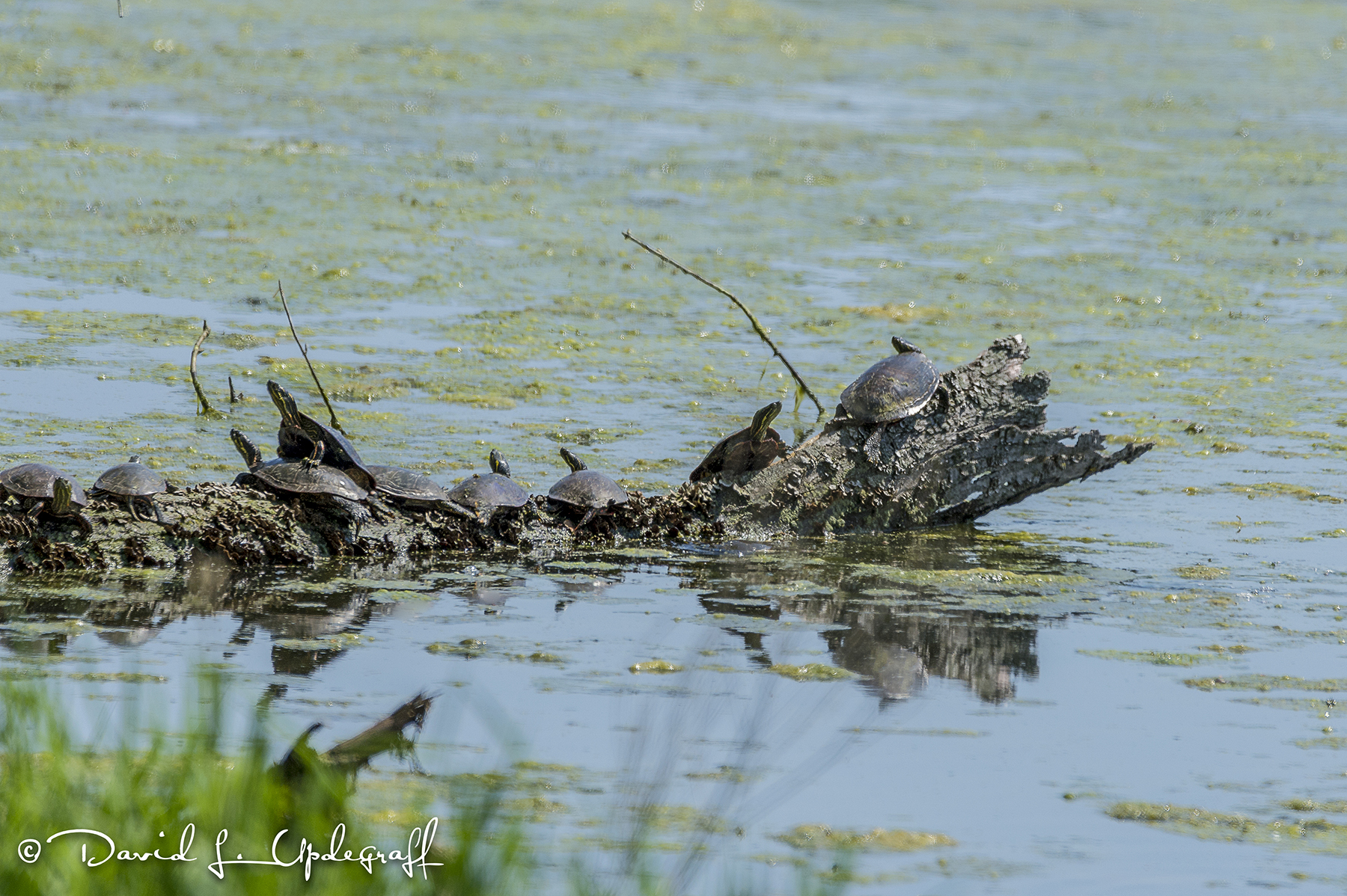 I don’t ever remember seeing as many turtles at Green Island as I did this day. It was a beautifully sunny day with temperatures in the 80s and the turtles were out in full force. If there was a dead tree, branch, or rock sticking out of the water there were turtles on it. If there isn’t room on the branch, no problem just get on top of the turtle below you. 🙂