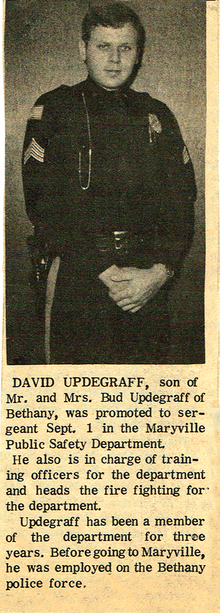 I spent an hour reading some of those news articles and looking at the pictures of me when I was young, in shape and a public safety officer. The image above was taken by the Maryville Daily Forum (or fool em) as we called it. I was promoted to sergeant on September 1st and I’m going to say the year was 1973, but I do not know that for sure.