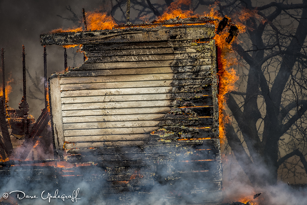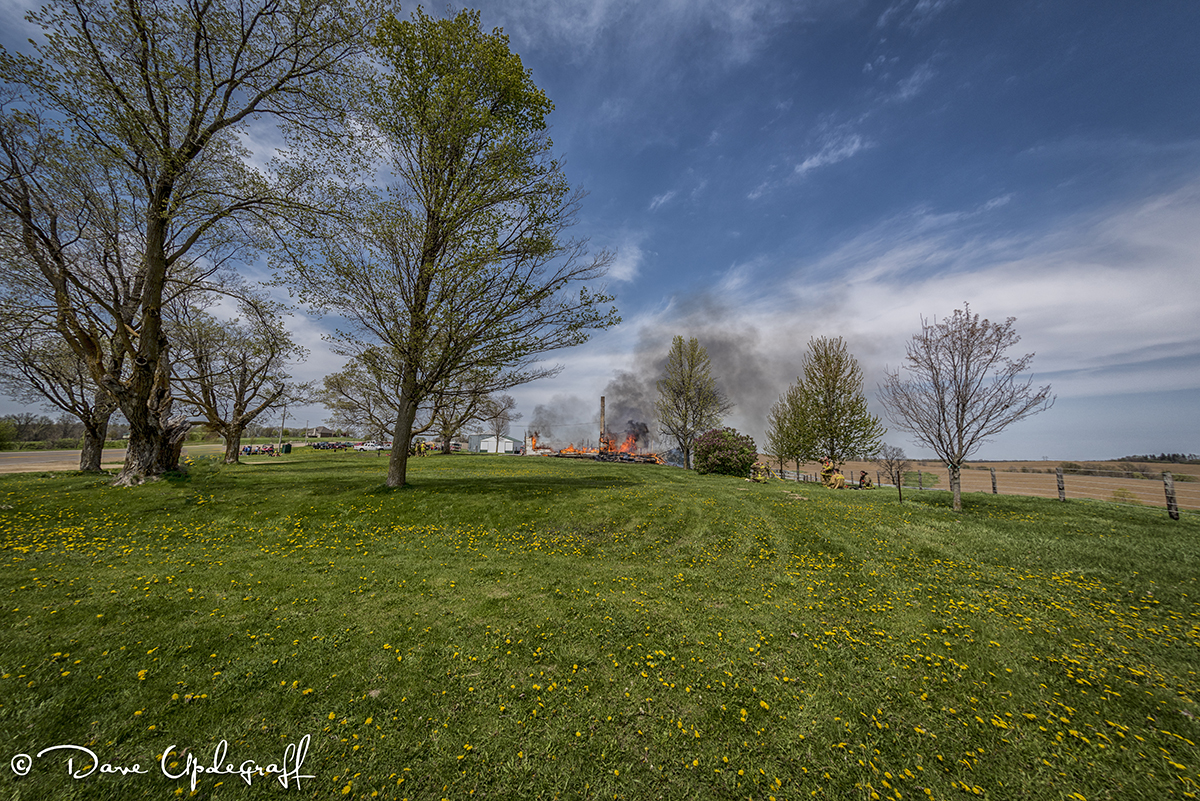 It jumped across the road and set an unharvested field of corn on fire as well as shown in the first image. I couldn’t get any closer to show the fire of the unharvested field. I was blocked by law enforcement. 🙂