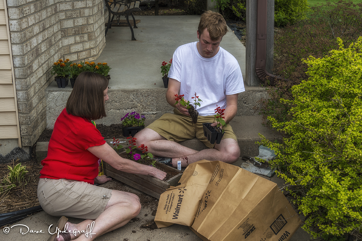 Mark’s gift to his Mother was some flowers, which he then helped her plant. It made Jeanne very happy and I tried to capture the moment.