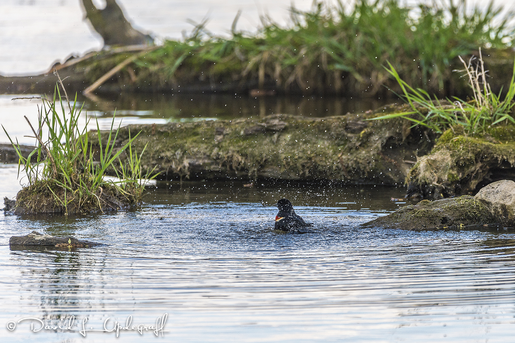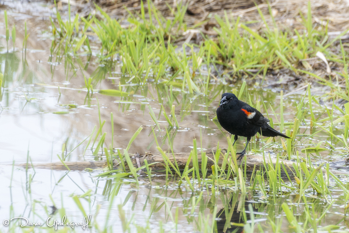 Finally, I’ll leave you with this Red-Winged Black Bird doing his thing at one end of the duck pond. I was looking for some little coots but this guy was all I could find. Typical aggressor that they are he was giving me a piece of his mind for invading his protected territory.